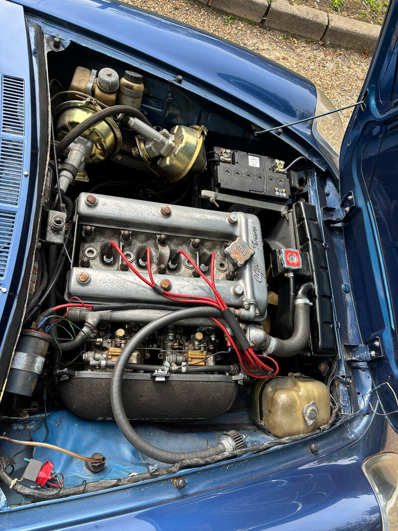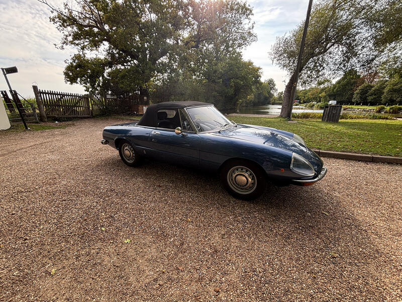It's with great reluctance that the loss of storage means that this car is up for sale. Very rare 1750 Spider, I have owned it since 2010. Since then it's had a top engine rebuild, new brakes, servos, pipes, rear LSD, exhaust, front cross member. It has a hidden electric pump under the dashboard that ensures it starts every time. Carburettors perfectly calibrated on a rolling road, engine still pulls 120HP. Certificate of Origin from Alfa Romeo shows it was originally ivory, but has been this Ferrari blue for more than half it's life. An absolute joy to drive, few small bodywork issues and the syncromesh between 1-2 gear has the usual issues. Please call for further details | Service History: